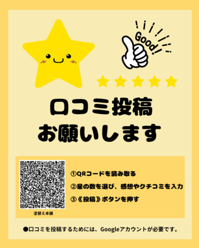 ※Google口コミをしていただくためにはGoogleアカウントが必要です