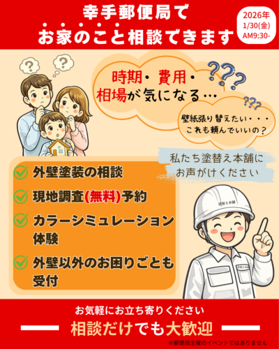 【幸手郵便局】外壁塗装の無料相談会を開催します(1/30金)